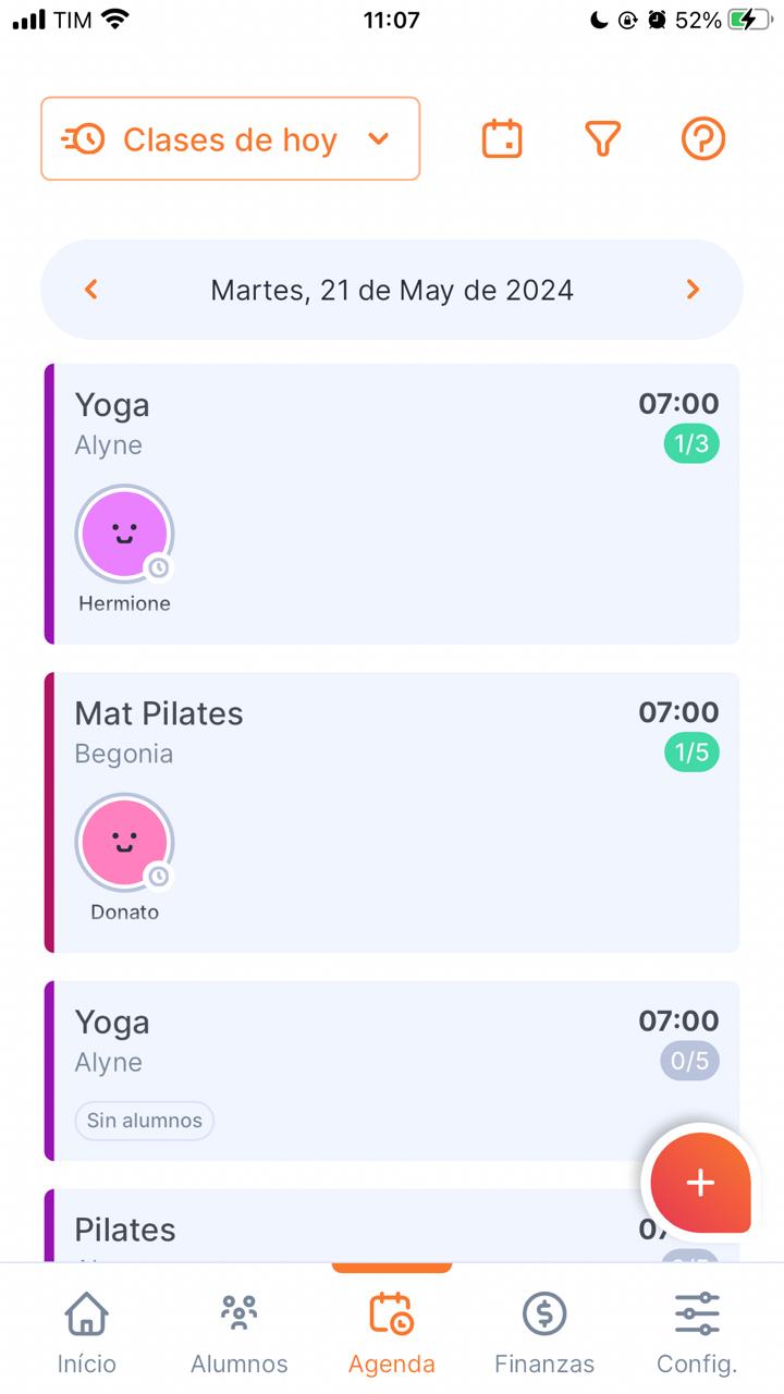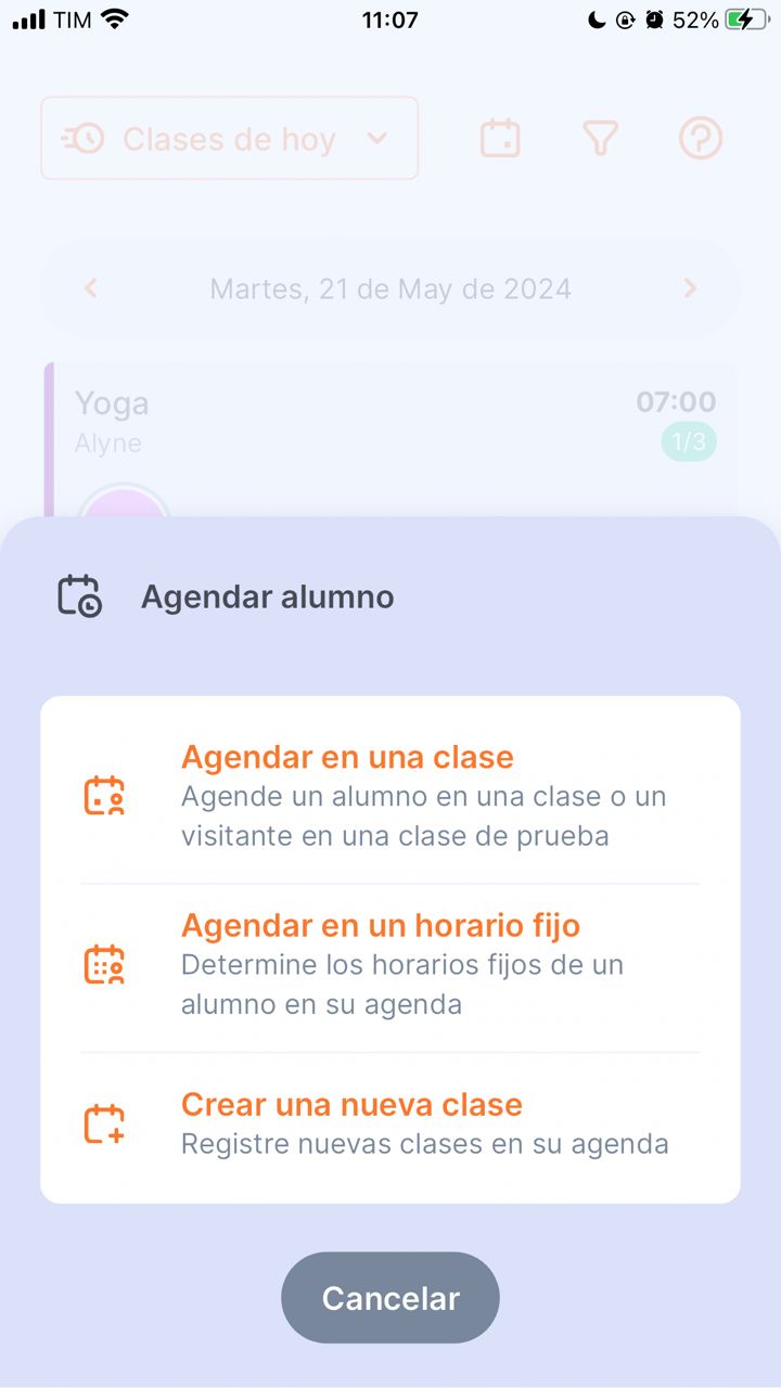 Para crear una clase, accede al menú Agenda: