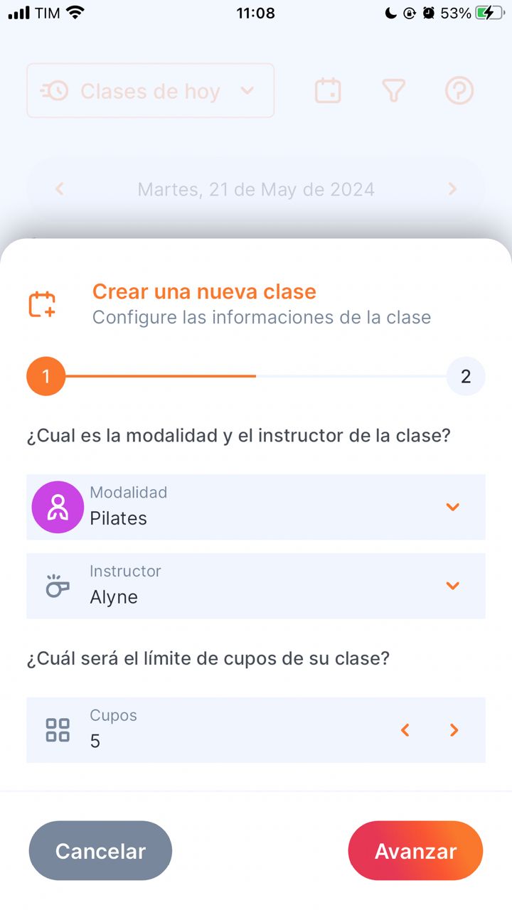 3. Completa la modalidad: indica qué tipo de clase es (ejemplo: pilates individual o muay thai para principiantes).
