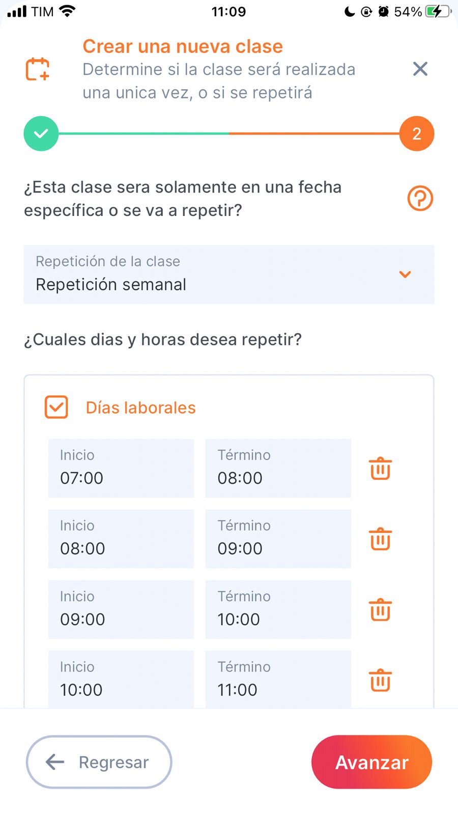 6. Informa la repetición de la clase: agrega cuántas veces a la semana se ofrece esta clase (o indica si es una clase única).