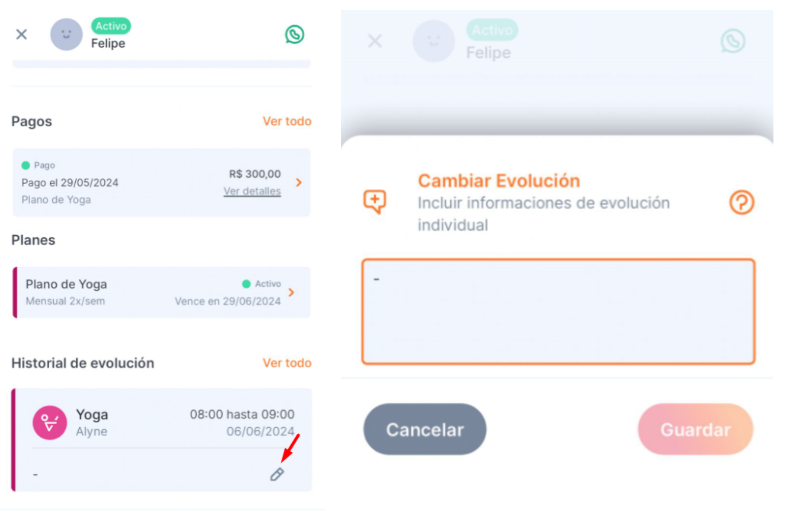 Para editar una evolución creada: