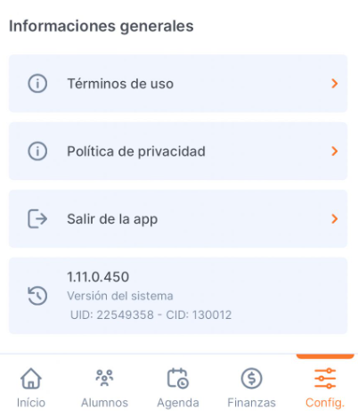 La versión de tu aplicación se encuentra en el menú "Ajustes", en la sección "Información" que se encuentra al final de la página. Ten este número a mano en caso de que necesites reportar algún problema.