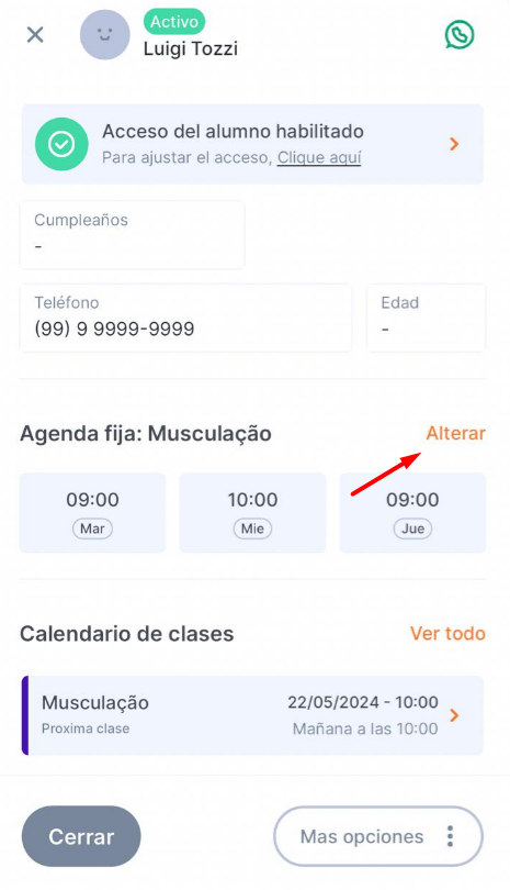 1. Accede al perfil del alumno (Alumnos > Busca el nombre del alumno deseado).