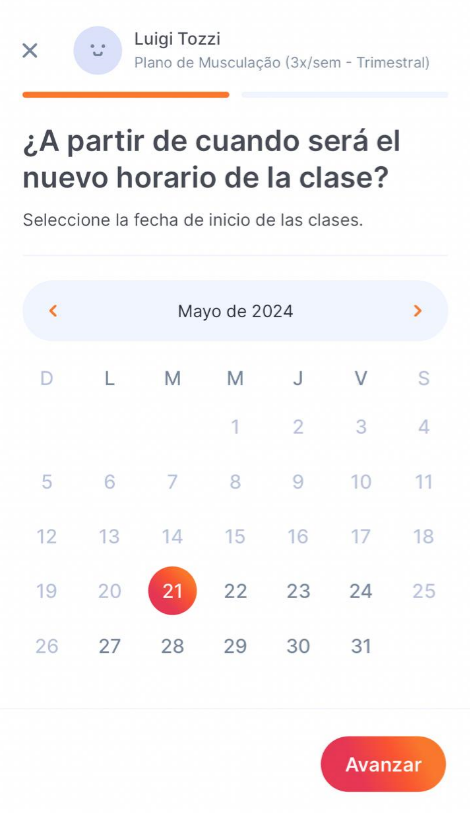 4. Indica a partir de qué fecha el alumno cambiará su horario y haz clic en "Siguiente".