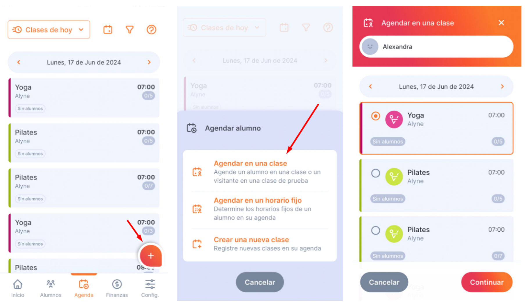 3. Elija la clase en la que desea agendar al alumno