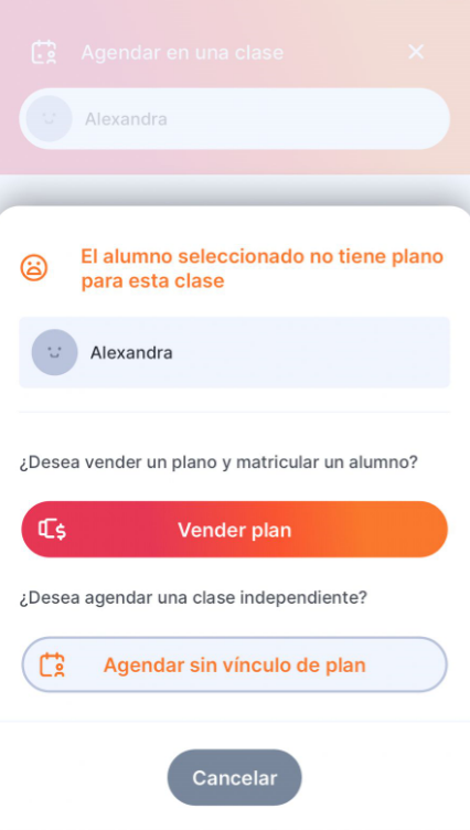 4. Si el alumno aún no tiene el plan de la clase seleccionada, toque en "Vender plan".