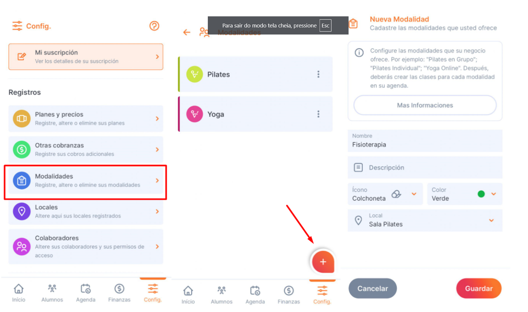 Modalidad es la categoría de clase que ofreces en tu estudio, como por ejemplo Pilates, Yoga o Reiki.