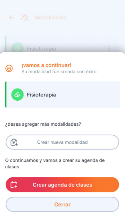 Una vez creada la modalidad, puede crear el calendario de clases. Para más información sobre esto, consulte el artículo: Cómo crear una clase.
