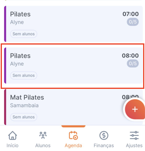 1. No menu agenda, acesse a aula que deseja alterar