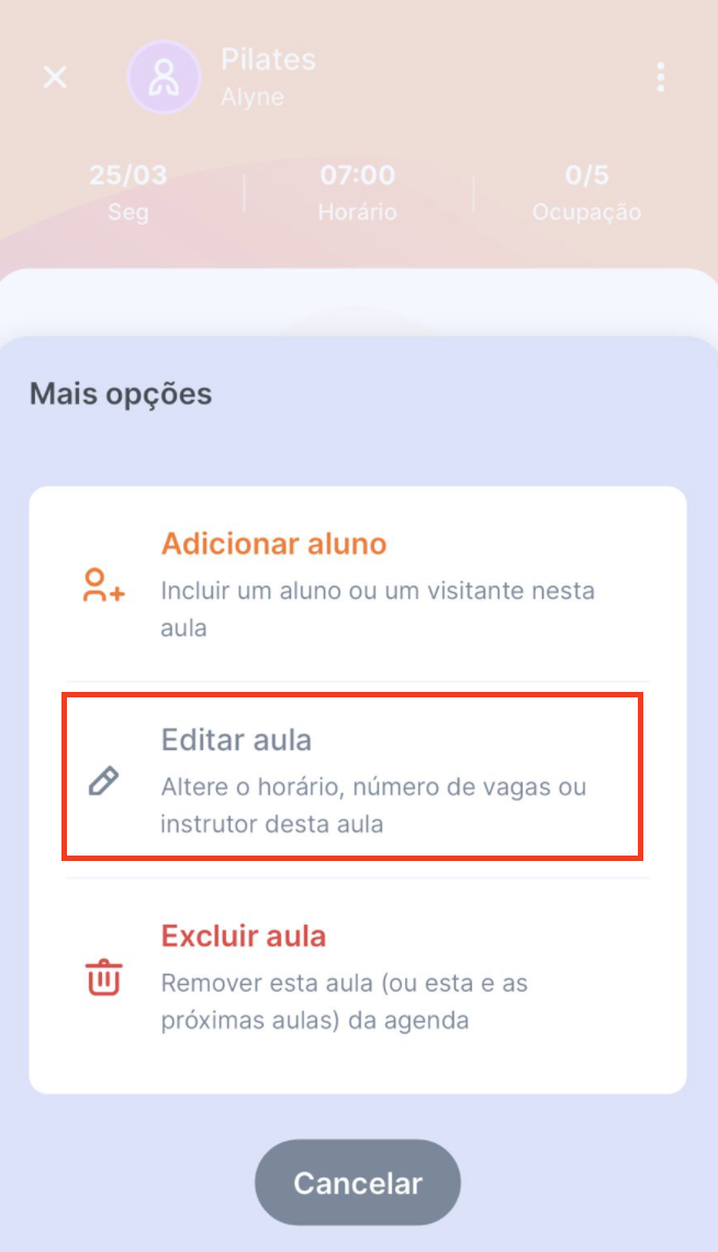 3. Toque em "Editar aula"