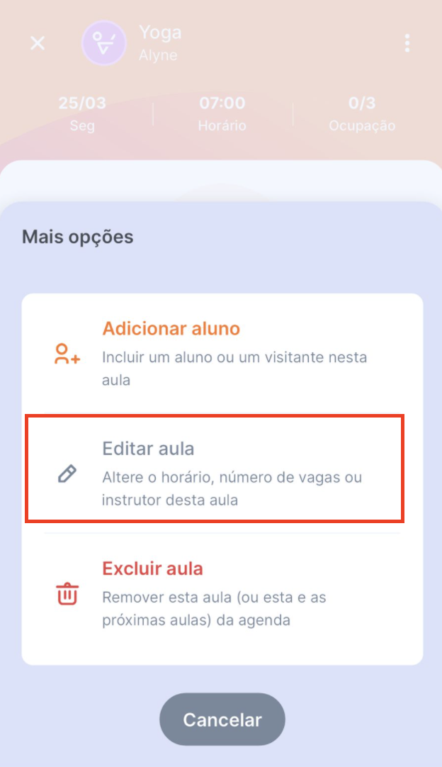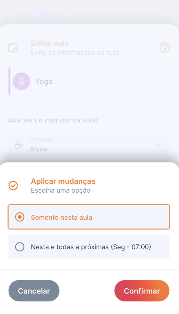 7. Informe se deseja alterar apenas uma aula ou esta e as próximas