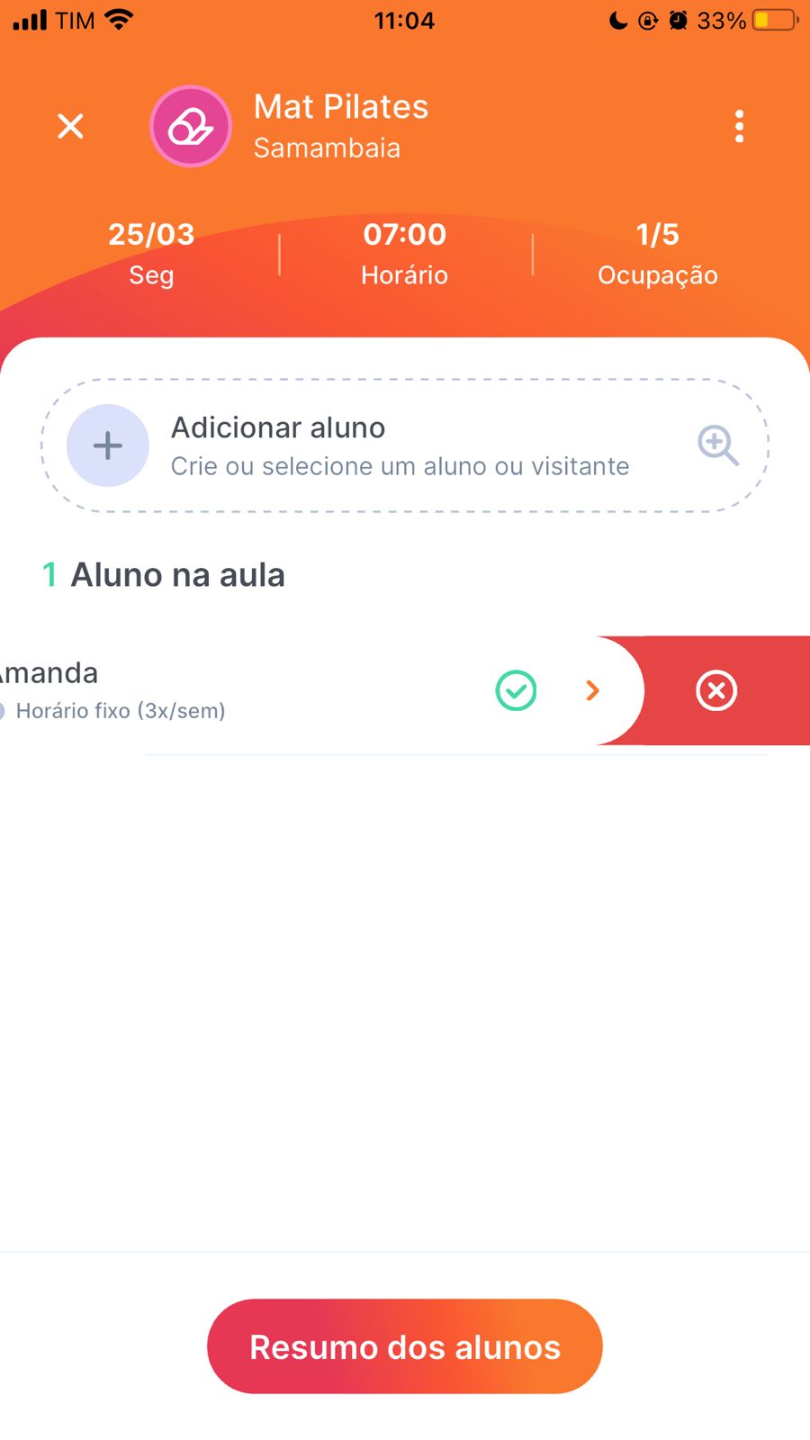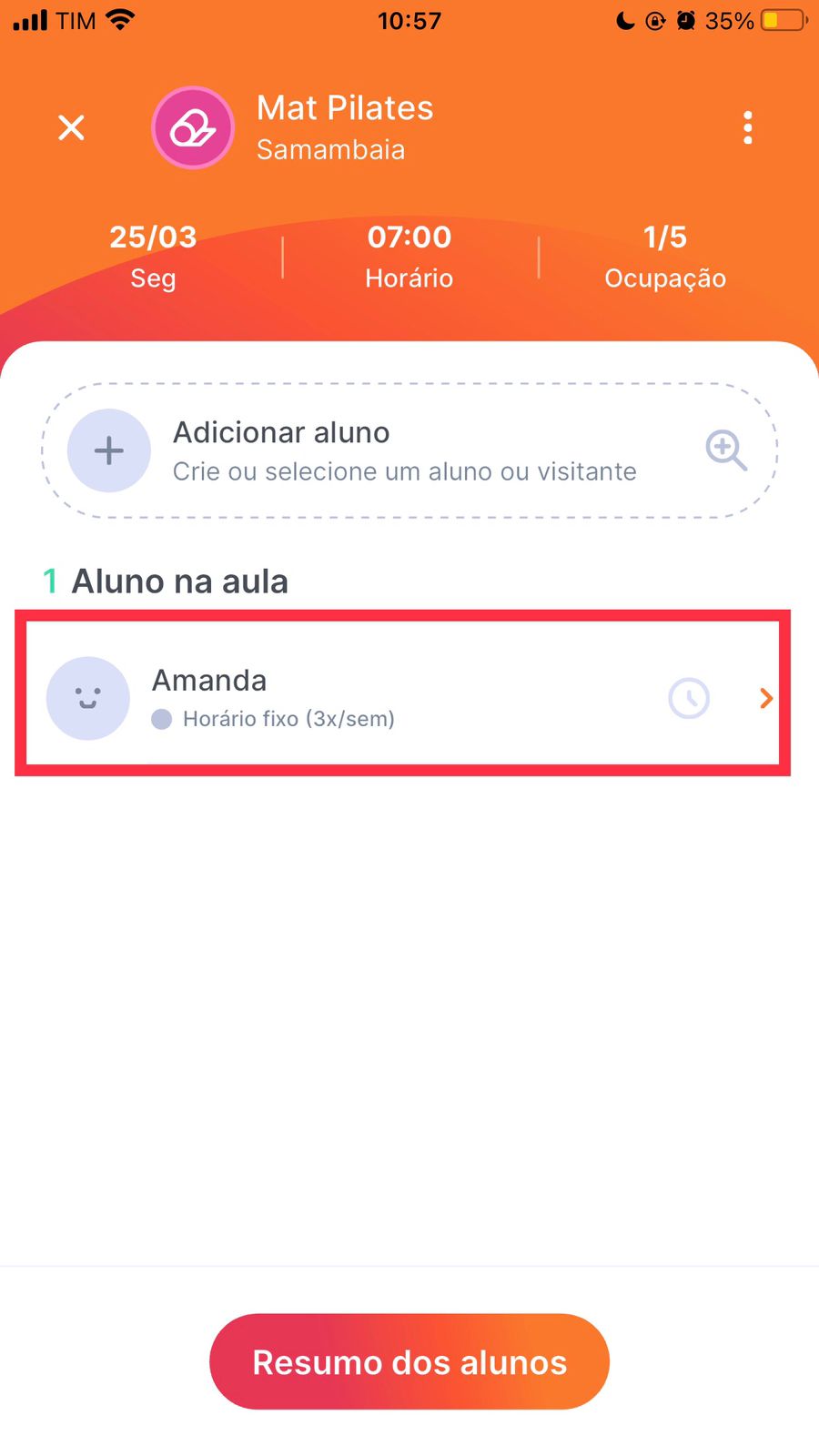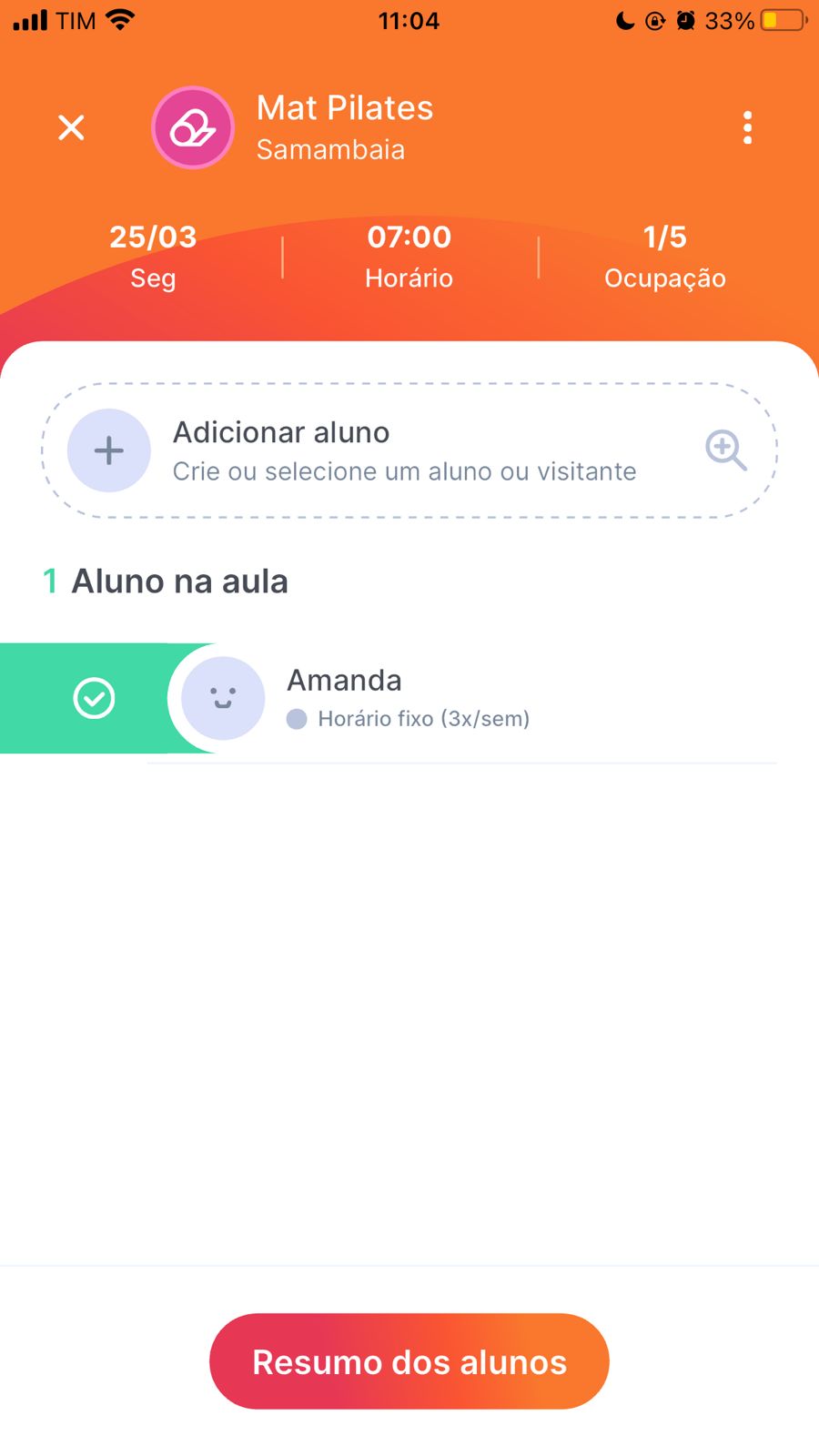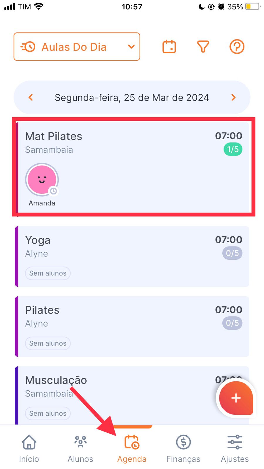 2. Acesse a aula que será realizada e você verá a lista de alunos que estão matriculados nesse horário
