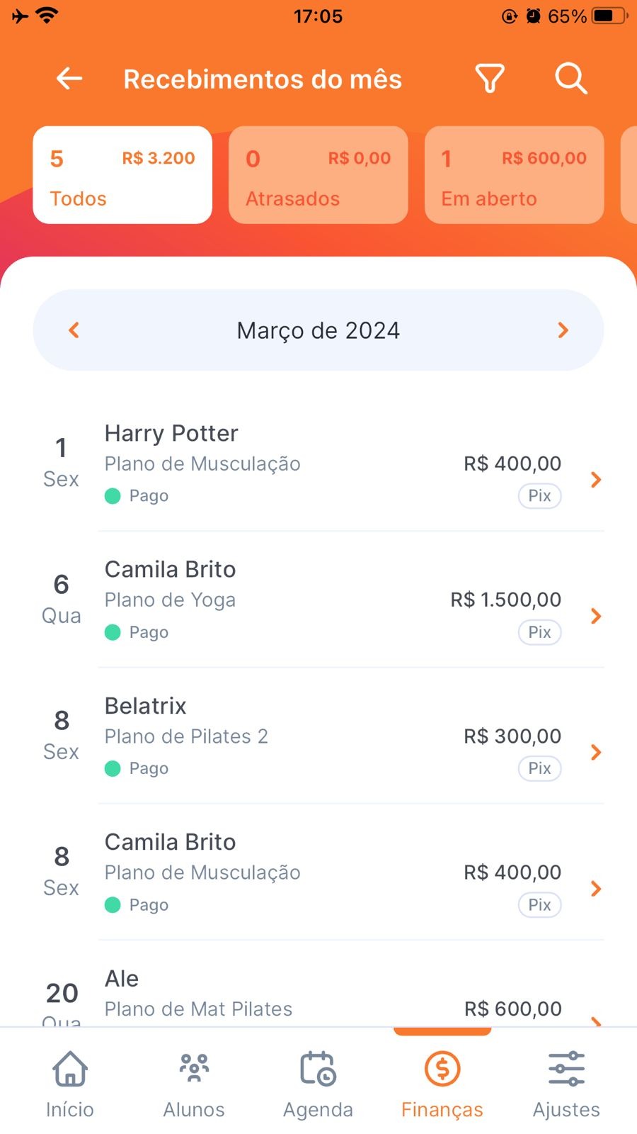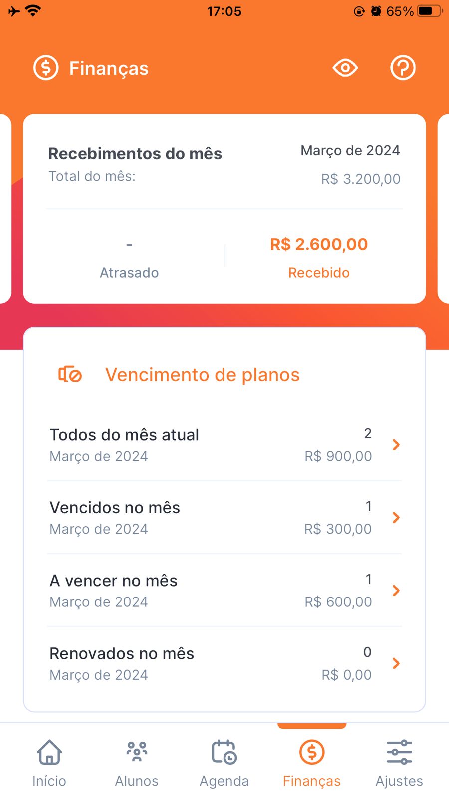 No menu Finanças, você pode visualizar a projeção de recebimentos por mês.